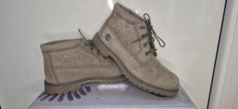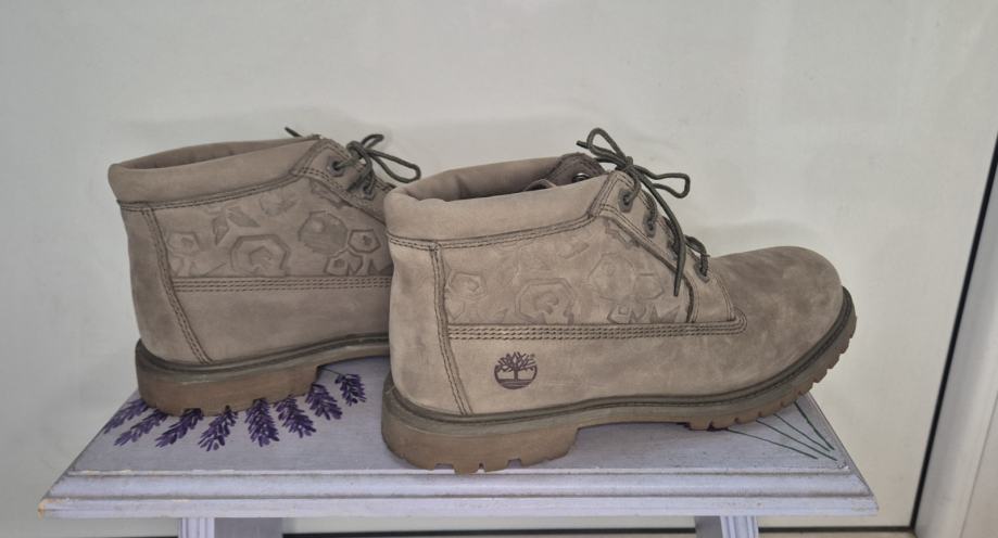 Ženske zimske kožne visoke cipele s ugraviranim ornamentima, khaki boje. Nošene samo jednom, model ne odgovara mom obliku stopala. Plaćene cca 120 eura.