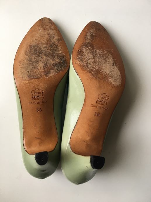 Vintage kožne mentol zelene salonke 36 SHIMCO London (Italija) SNIŽENO