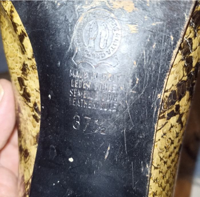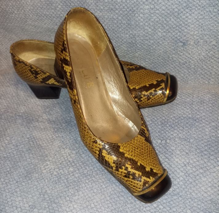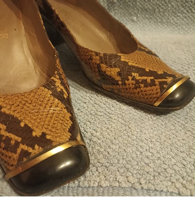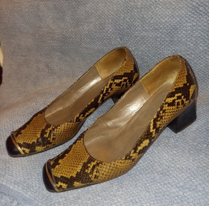 VINTAGE PRINCIPE ŽENSKE CIPELE 37,5 ZMIJA BLOK PETA ČETVRTASTI VRH