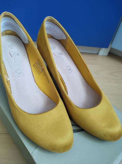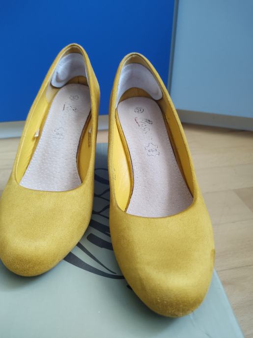 Salonke- cipelice, br.37, žuto-zlatne boje. Kožni uložak, dodan jastučić na peti. Nošene samo jednom (na krizmi).