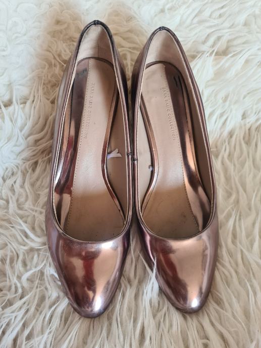 Metalik Zara cipele, visina pete 5.7cm, broj 38. Srebrne.
