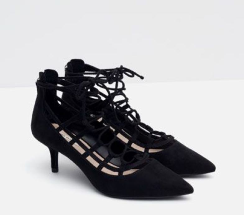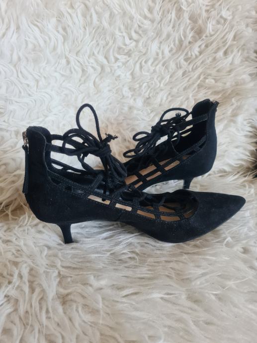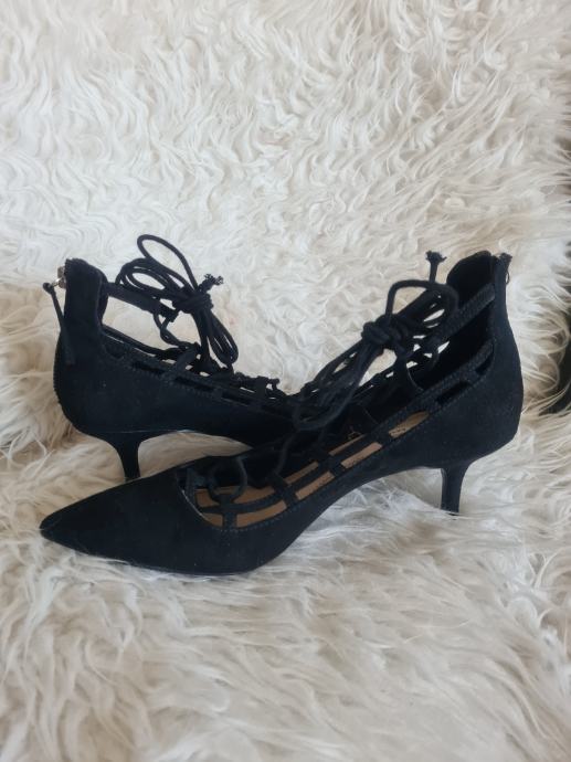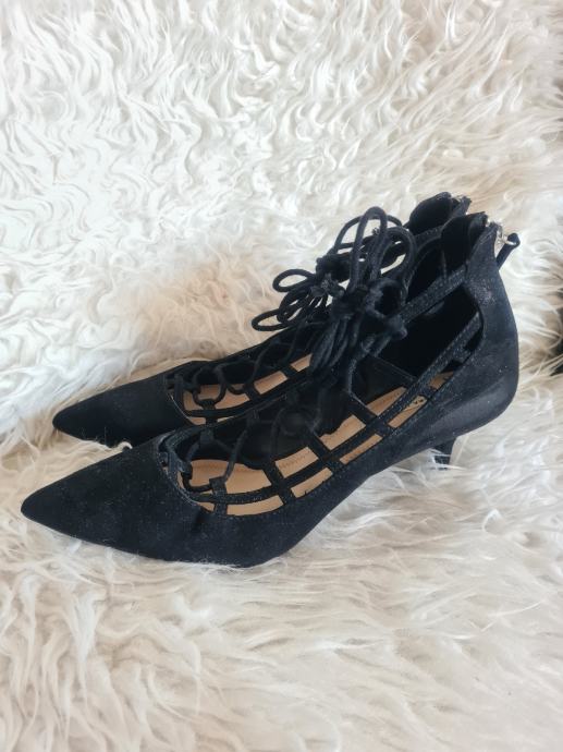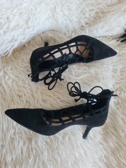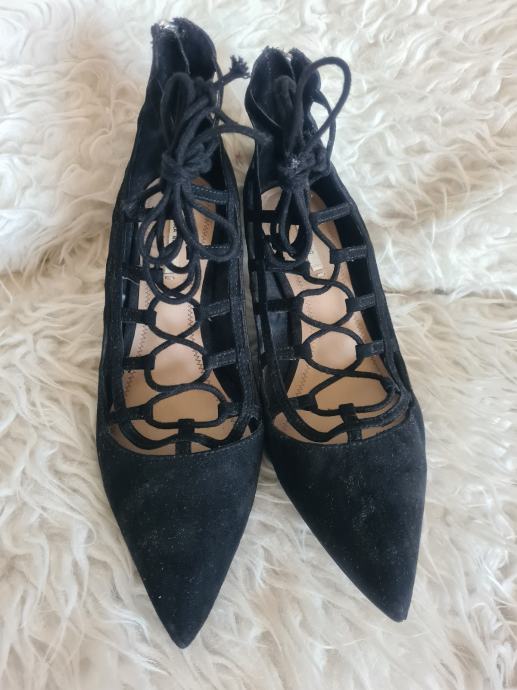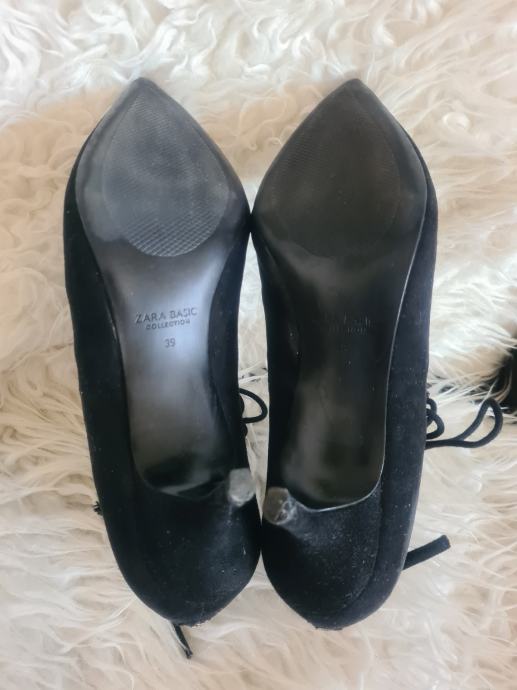 Prekrasne crne Zara cipele, kao nove, na vezanje. Idealne za svakodnevno koristenje s obzirom na malu petu visine 5.5cm. Broj 39