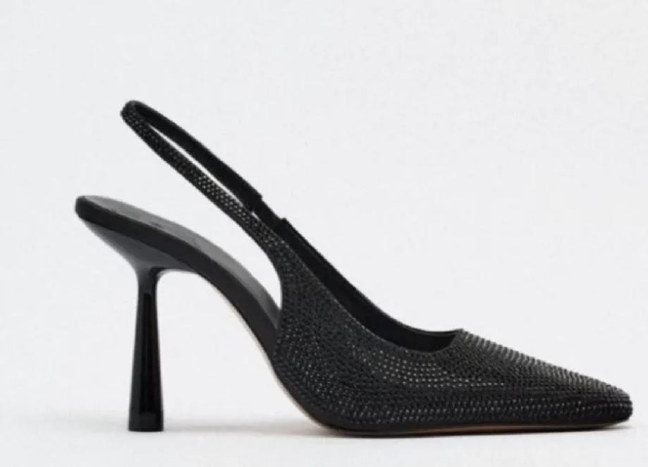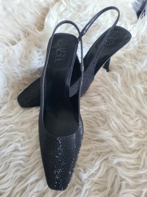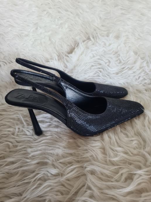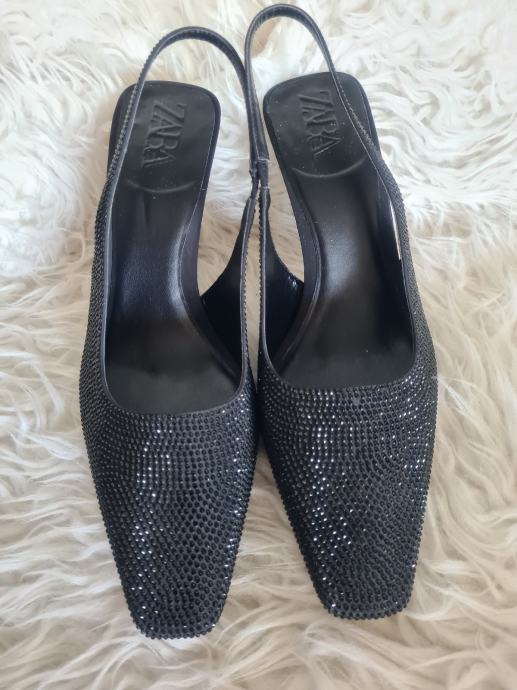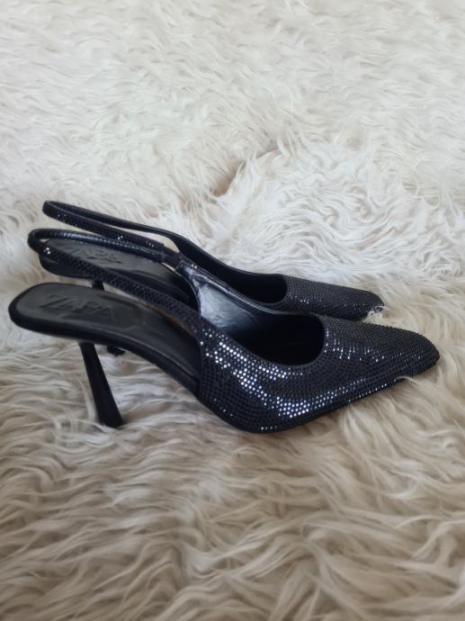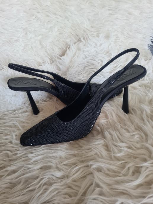 Prekrasne nove Zara slingback cipele, crne boje, odozada otvorene, visina pete 9cm, broj 41.