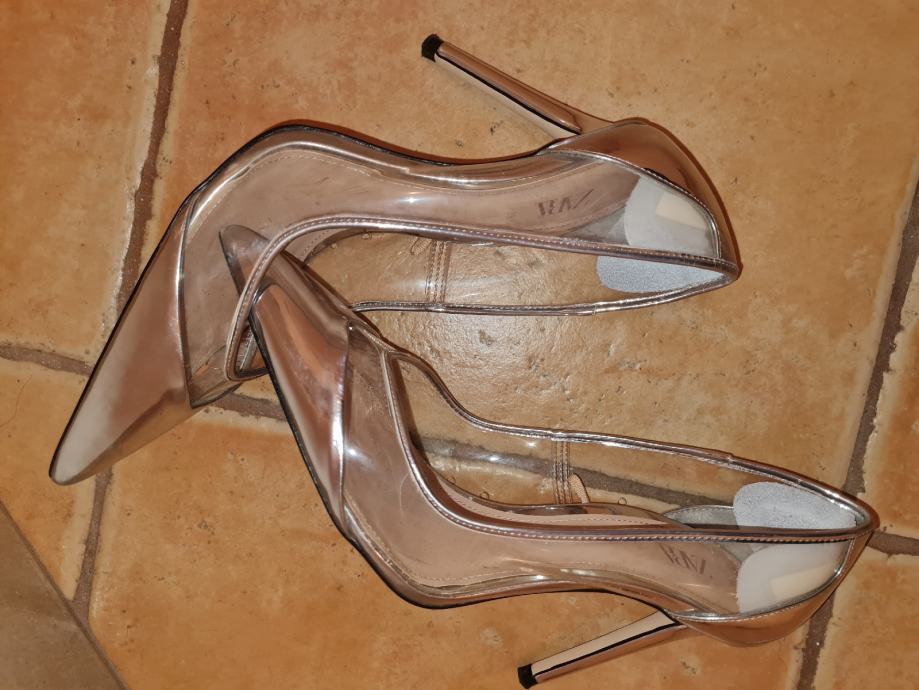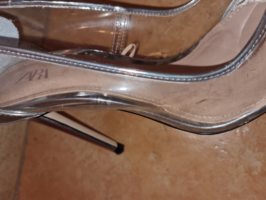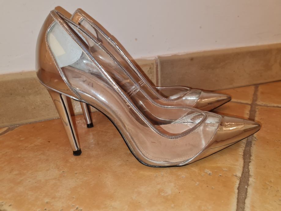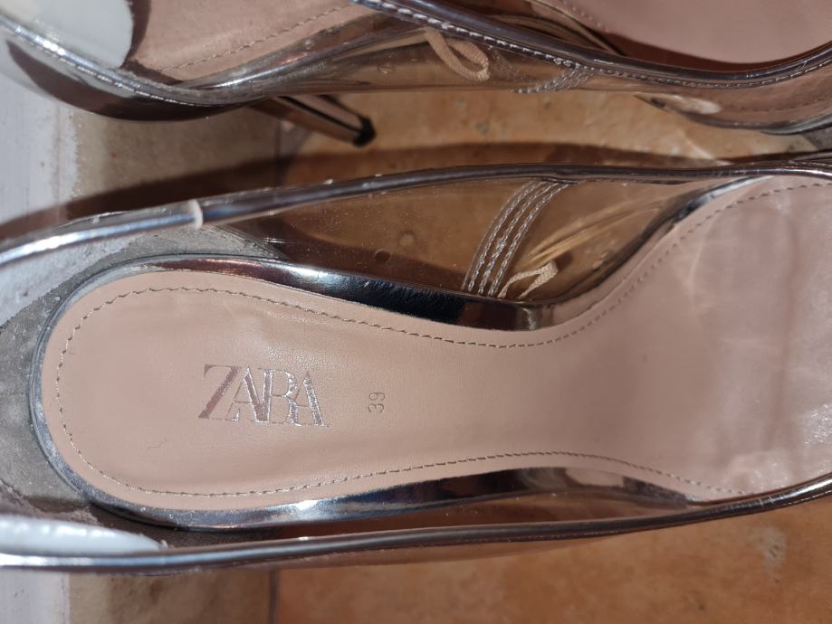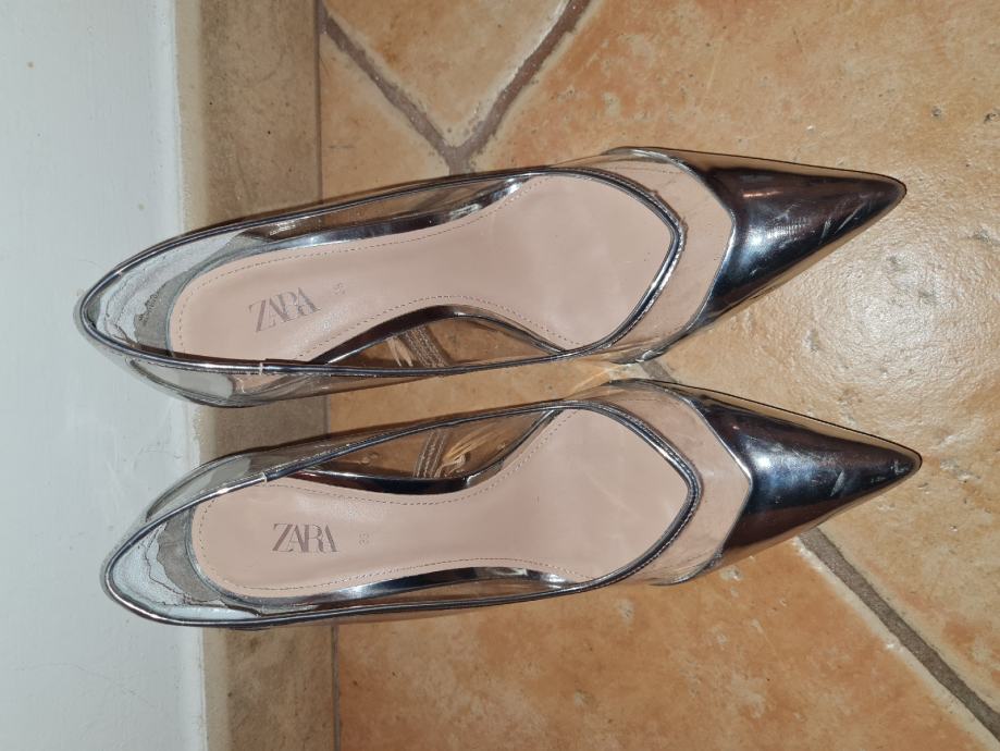 Predivne vel 39,zara srebrne prozirne štikle..par puta nošene sitni tragovi nošenja