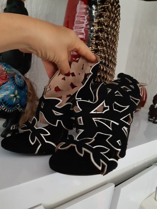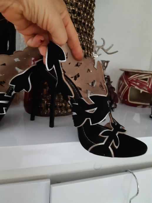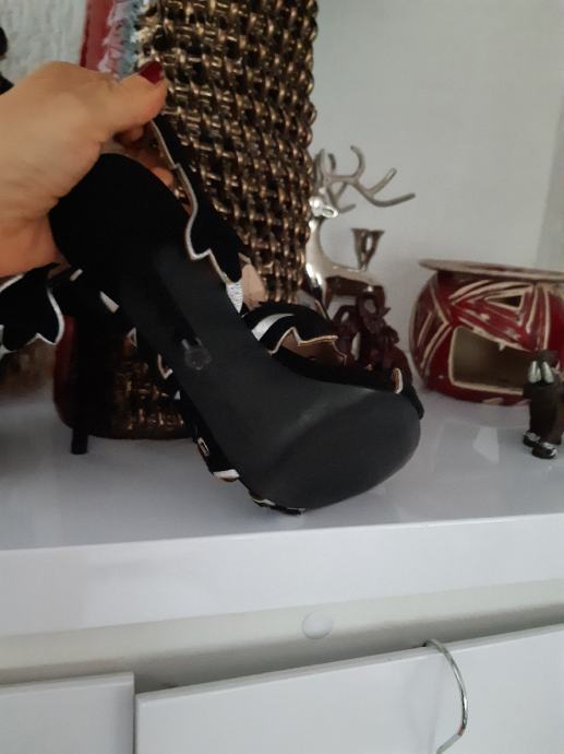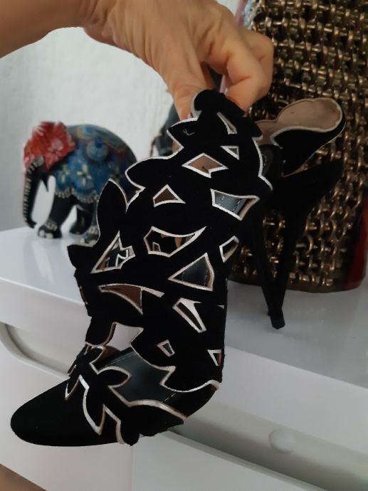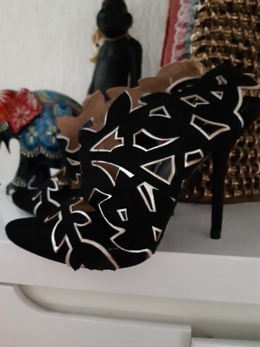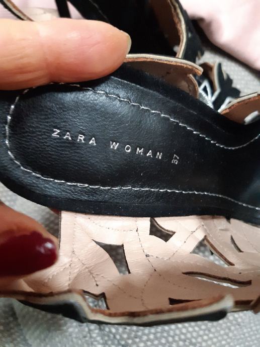 ZARA WOMAN crno- srebrne sandale štiklice, vel. 37. Visina pete: 11 cm. Duzina gazista: 24 cm. Koristene jednim.