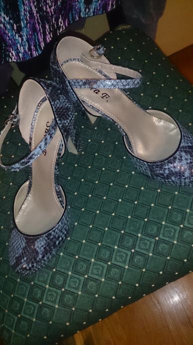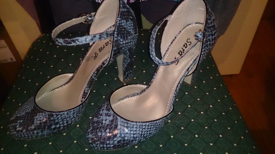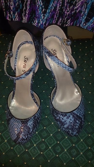 ELEGANTNE ŽENSKE CIPELE 39 SNAKE ZMIJA REMENČIĆ ZATVORENI PRSTI PLAVE