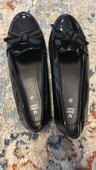Prodajem elegantne ženske cipele veličine 40 u crnoj boji s dekorativnom mašnicom. Cipele su potpuno nove, nikad nošene, samo bez originalnih etiketa. Lakirani materijal daje im moderan i sofisticiran izgled, savršene za razne prigode.