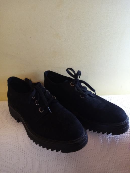 Elegantne crne ženske cipele Catwalk od umjetne brušene kože br. 41. Debeli i čvrsti protuklizni potplat.