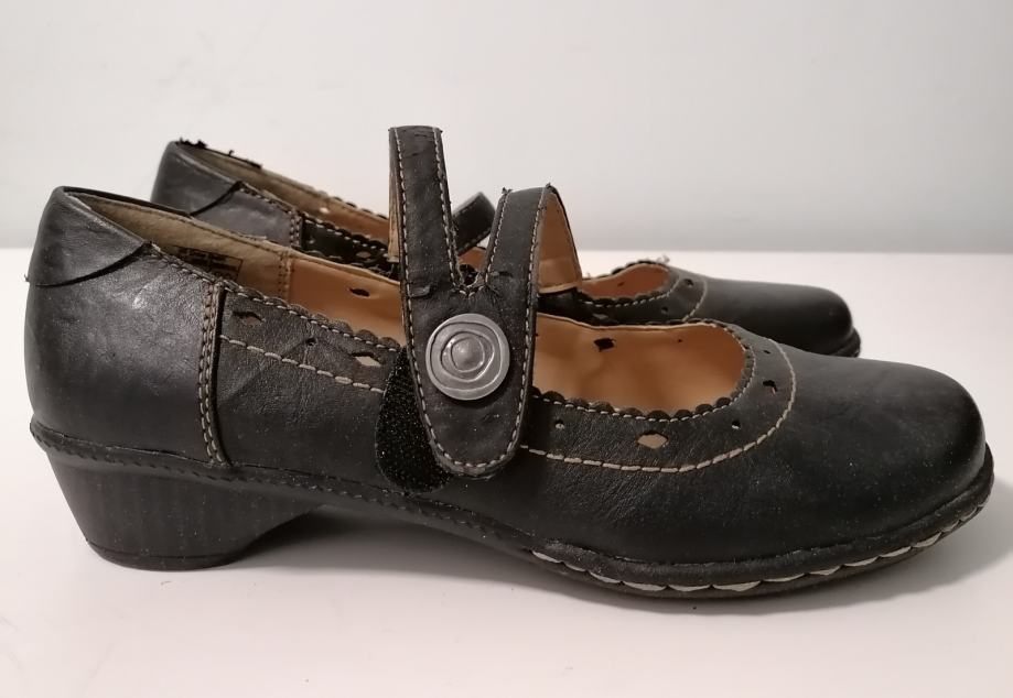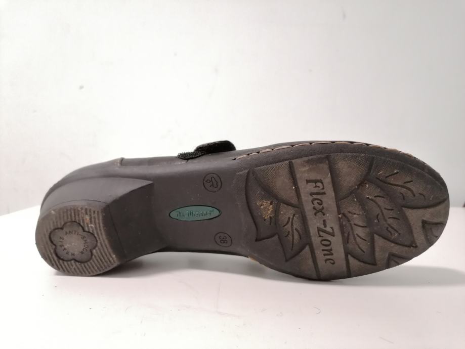 kožne cipele s kožnom antistres tabanicom; dužina unutarnjeg gazišta 24,3 cm; visina pete 3 cm; širina 8 cm