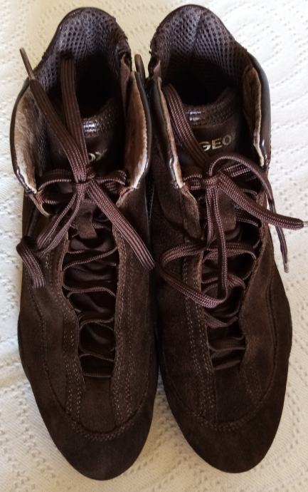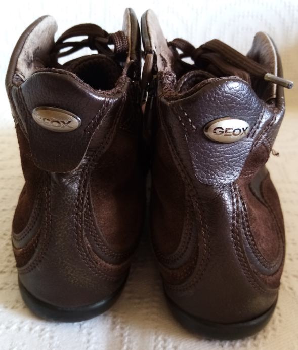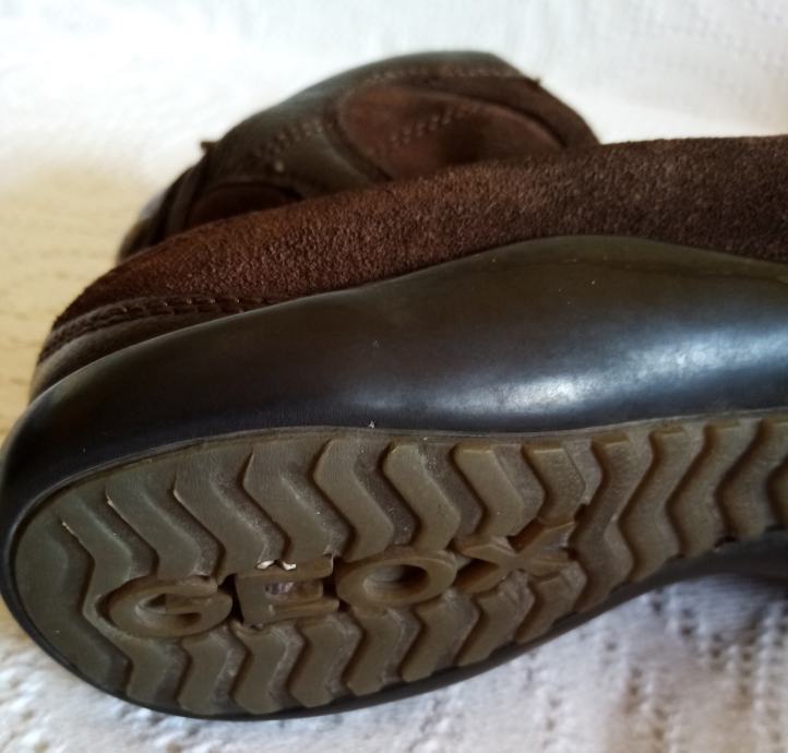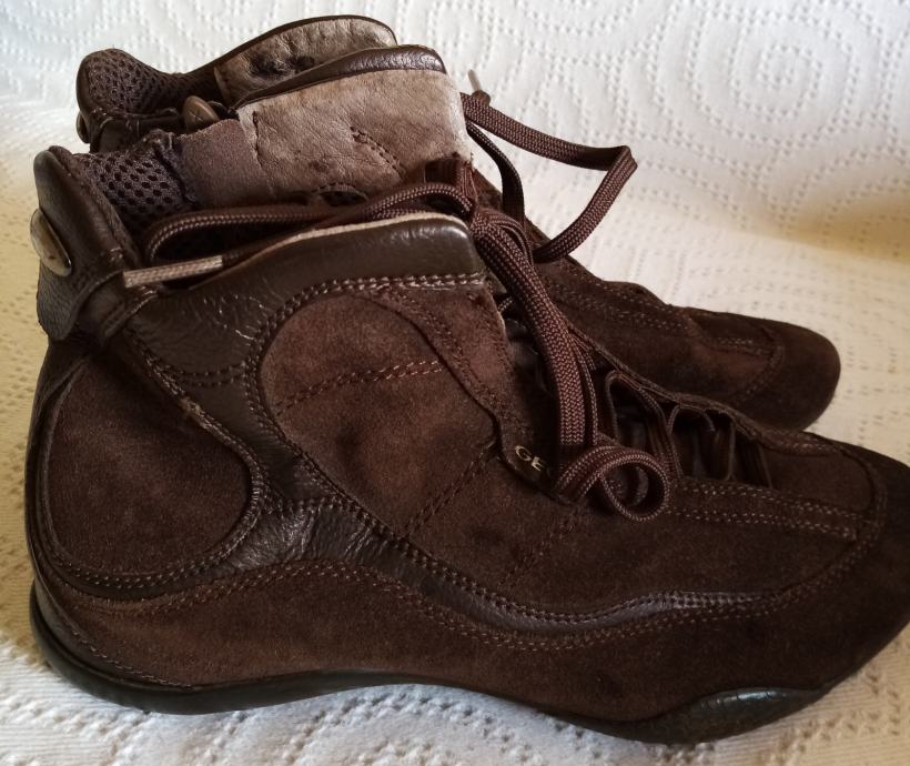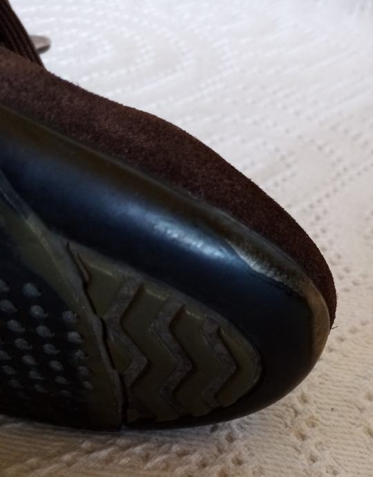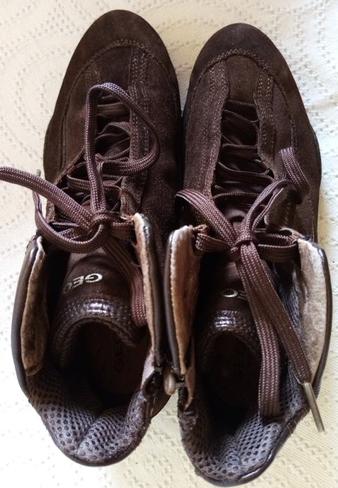 Smeđe boje. Izvana brušena koža. Potplat koji "diše". Zatvaranje na zip i vezice. Stopalica od prirodne kože.
