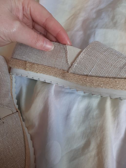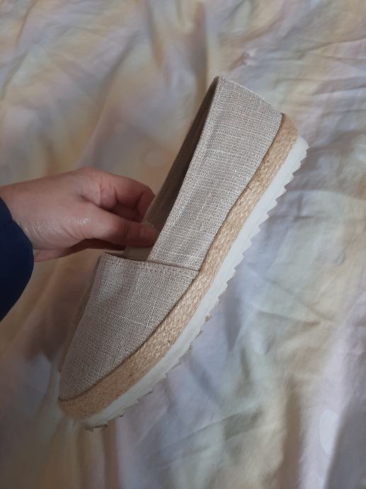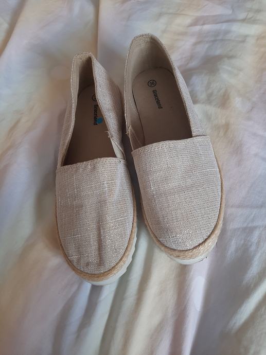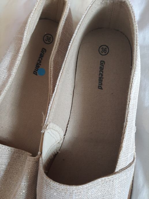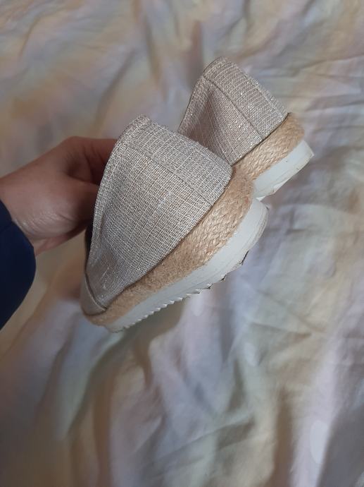 Prekrasne zlatne platnene cipele ravnog đona. Nošene svega na pola sata. Bez ikakvih oštećenja. Meni ipak premale. Vel. 36