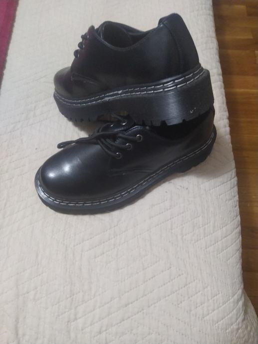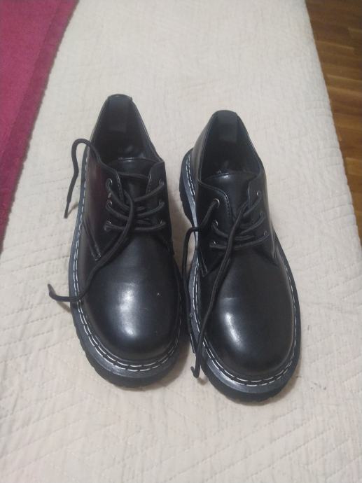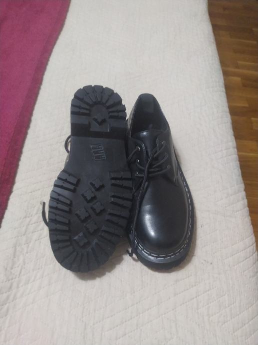 Prodajem ženske cipele u crnoj boji, veličina 41. Cipele su nove, bez etikete. Radi se o modelu s debelim đonom i vezicama, u stilu oksfordica. Masivna đon s profilom pruža dodatnu visinu i udobnost pri nošenju. Gornji dio cipele izrađen je od glatke crne kože, a bijela kontrast šav dodaje moderan detalj. Svakodnevne cipele koje se mogu kombinirati s različitim stilovima odjevanja.