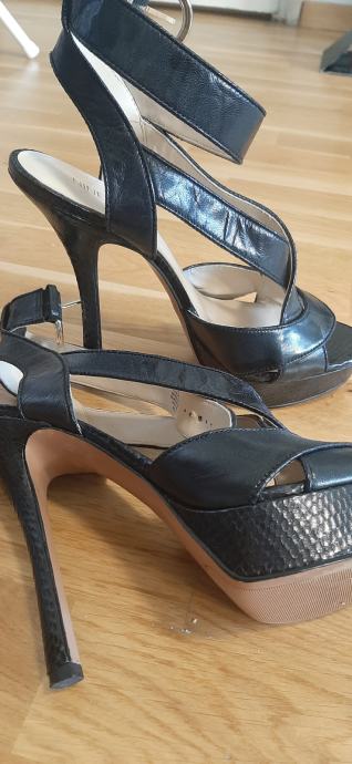 Poliester, unutra koža, guma dno, crna boja, broj 40, nošeno kao novo, potpetica 10 cm