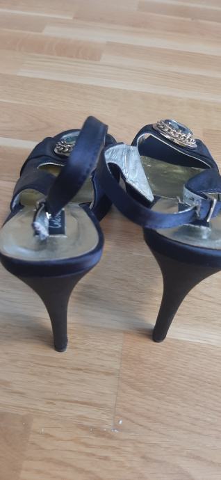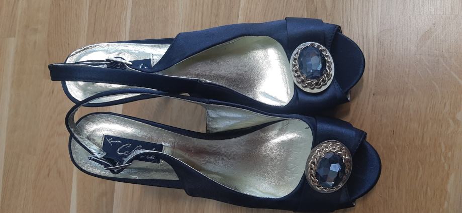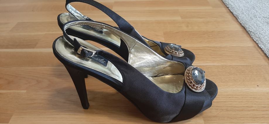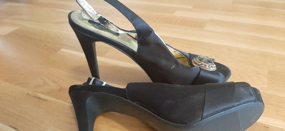 Cipele nošene kao nove, boja crna, platno, koža iznutra, plastika i guma dno, broj 40, potpetica 9 cm