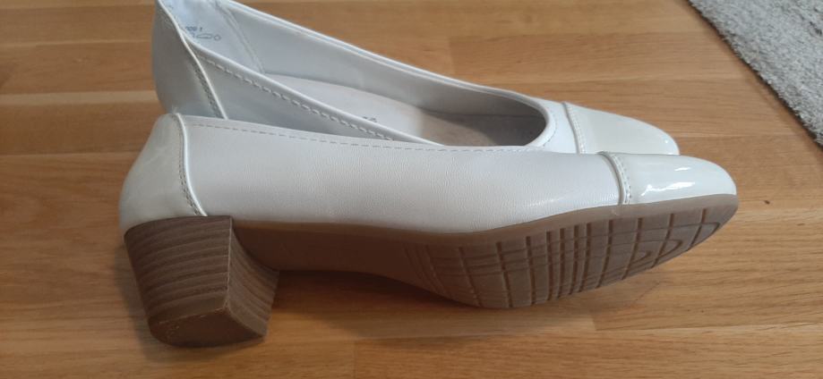 Unutra koža, izvana plastika, guma, broj 40, nošeno kao novo, boja bijela, potpetice 3 cm