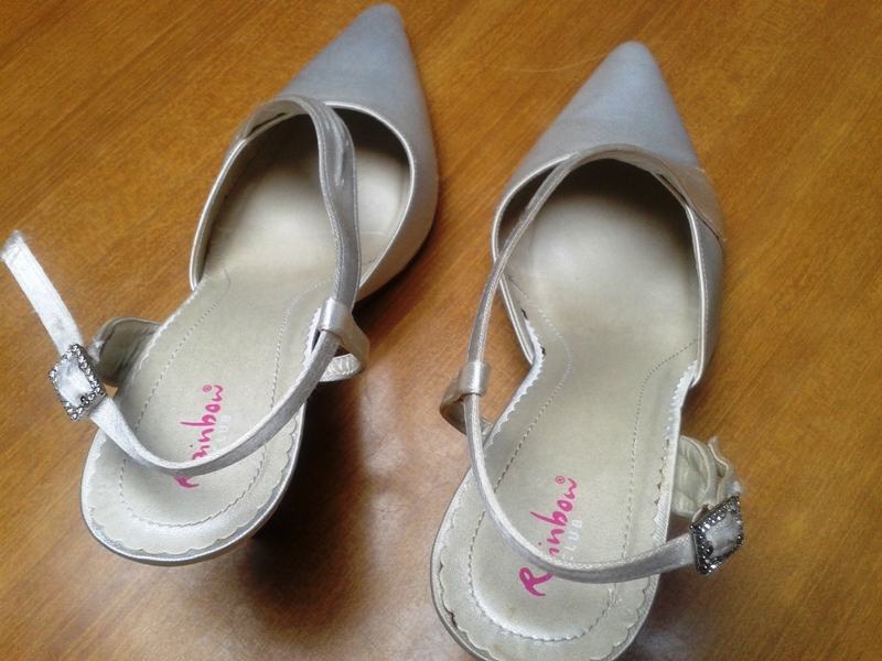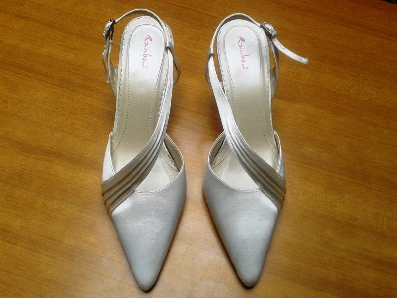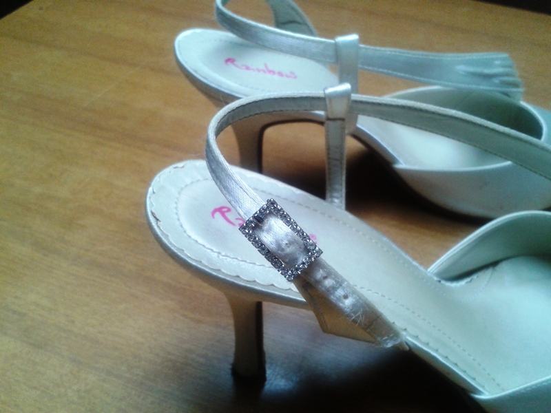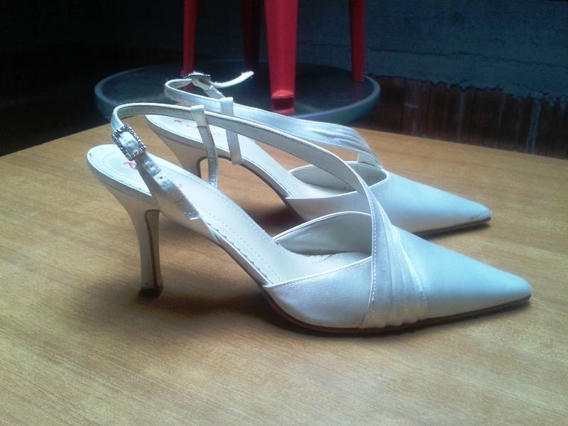 Nošene jedanput, cipele su od bijelog satena sa kopčom od kristalića.