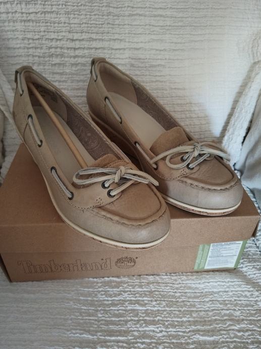 Prodajem nove ženske cipele marke Timberland, broj 39. Zapakirano u kutiji, nikad nošeno. Cipele su kožne, bež boje s potplatom od pluta, peta visine 6 cm.