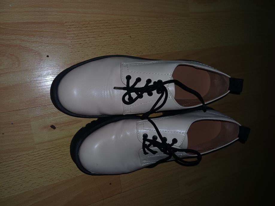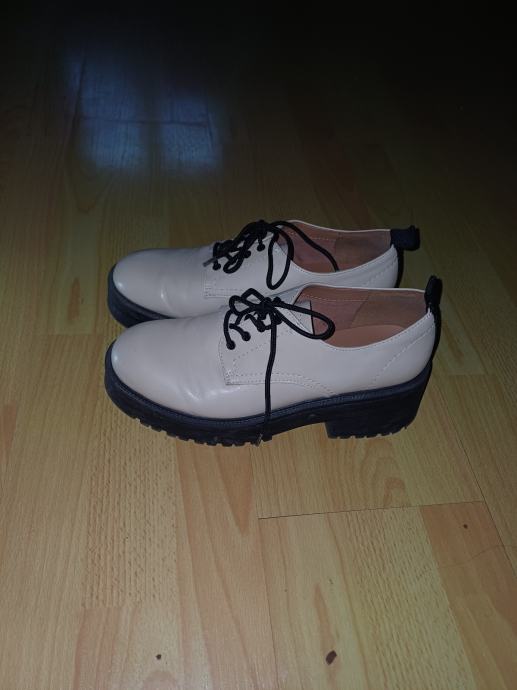 Prodajem rabljene bež kožne cipele na vezanje u 90s casual/grunge stilu, veličina 40. Cipele imaju petu od 4 cm i vrlo su udobne za nošenje. Savršene su za svakodnevne kombinacije i odličan su izbor za ljubitelje vintage mode. Slanje poštom/osobno preuzimanje