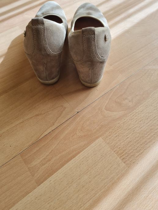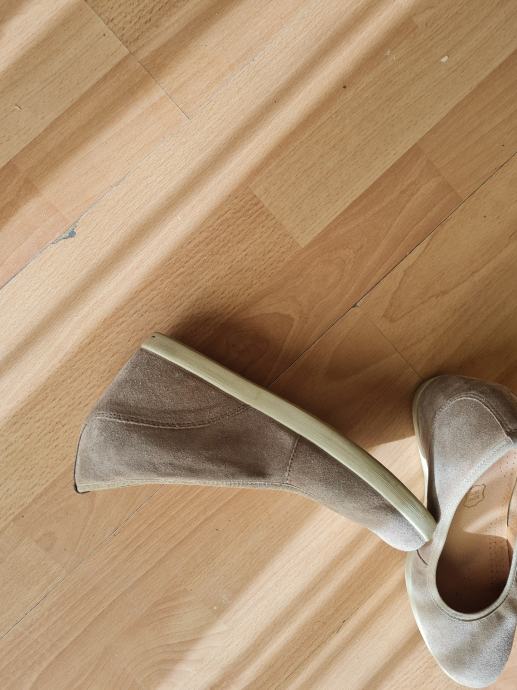 Prodaju se zenske kozne cipele od brusene koze,bez boje,cipele imaju punu petu 8 cm i ugodne za nosenje.velicina 39.Cijena 10€ Mob.0915684714