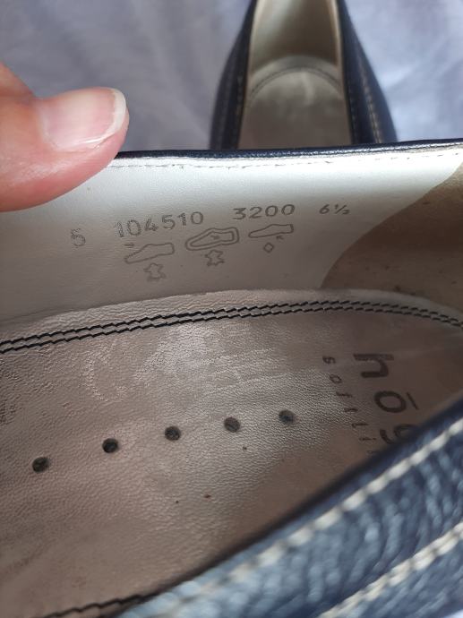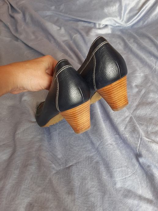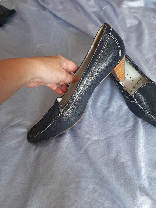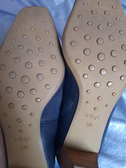 Tamnoplave kožne izvana i iznutra ženske salonke Högl. Nošene svega par puta. Bez ikakvih oštećenja. Vrlo udobne. Plaćene skupo. Vrl. 6 1/2 (40). Visina pete 5.5 cm