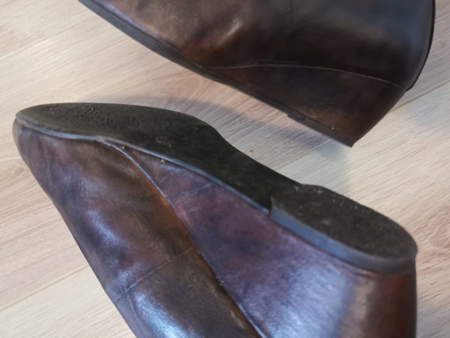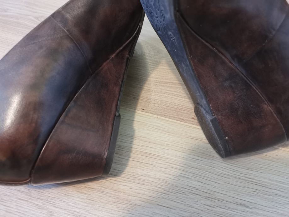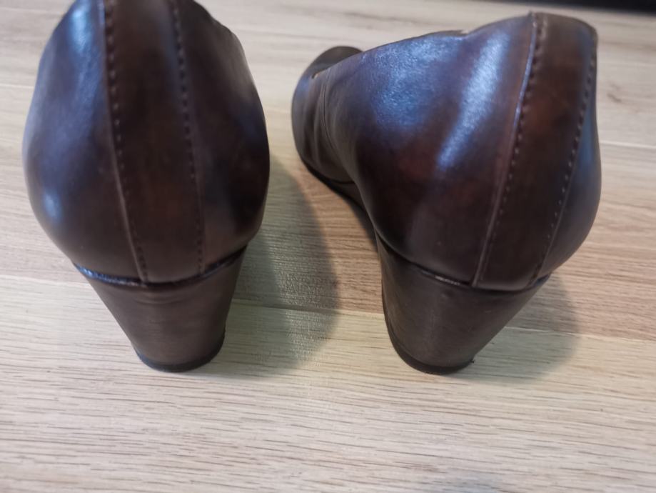 Prodajem zenske elegante cipele, veličina 40, cipela je na punu petu smeđe boje. Korišteno samo jednu sezonu, u odličnom stanju, nema tragova nošenja i bez oštećenja osim malo na đonu.