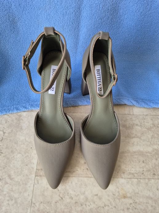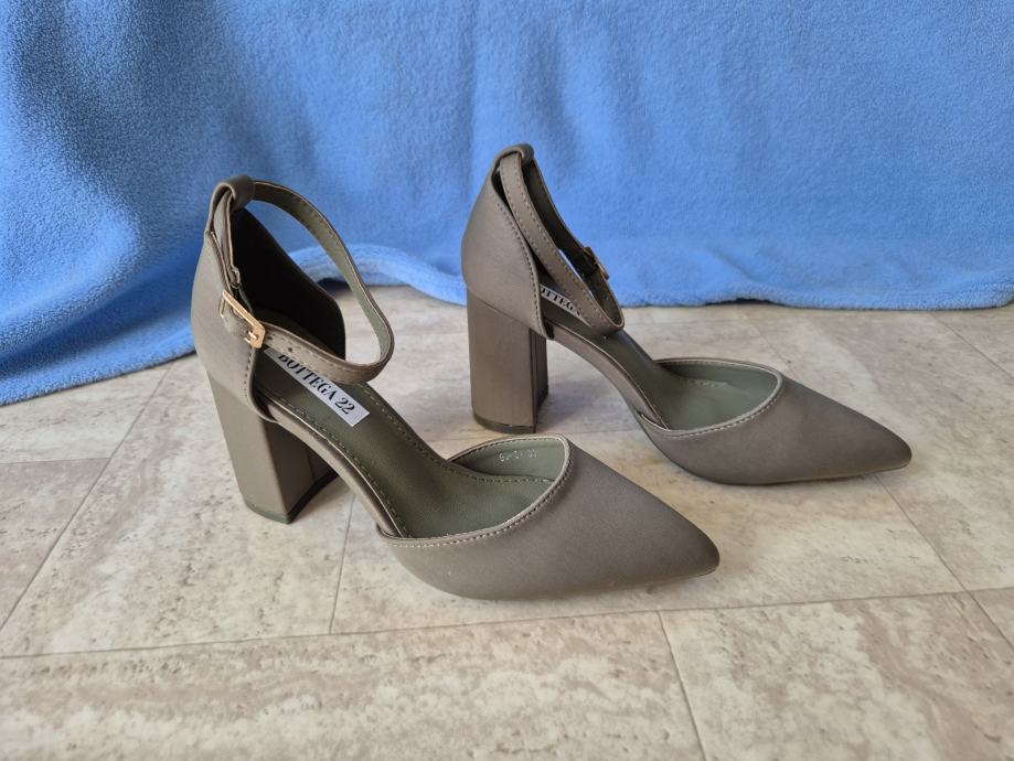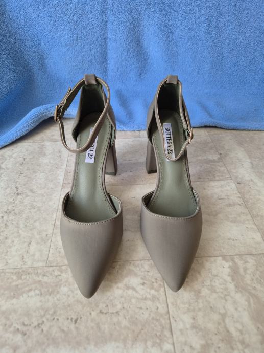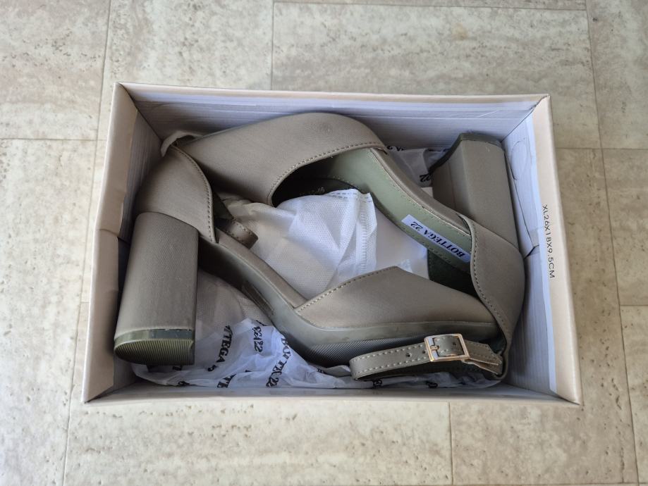 Ženske poluotvorene cipele, sandale br. 37 na visoku punu petu. Potpuno nove, nenošene u originalnoj kutiji.