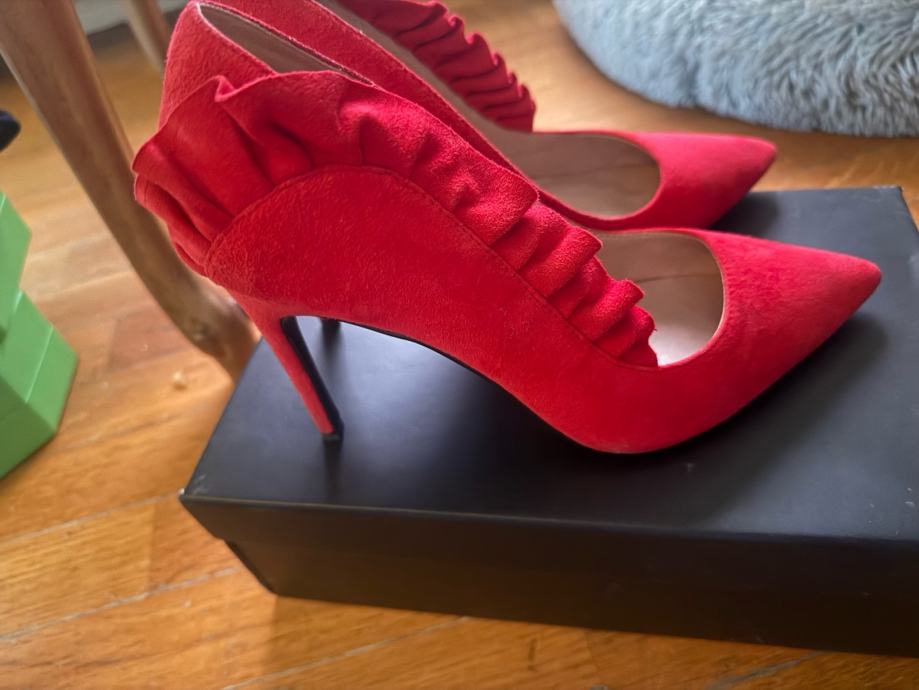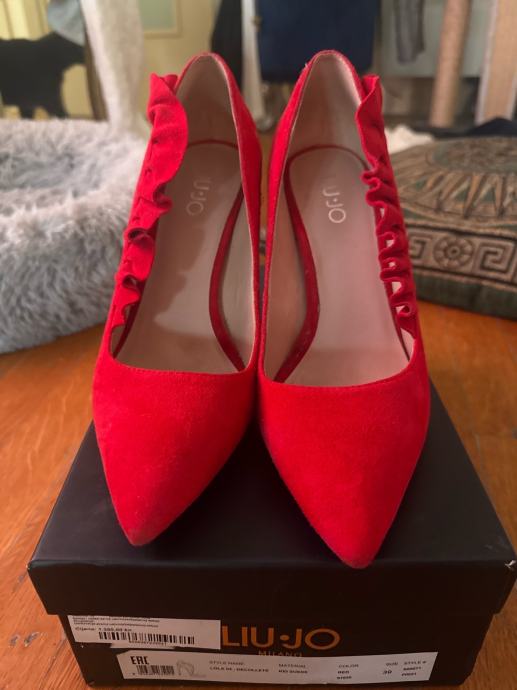 Prodajem ženske salonke od gamoša marke Liu Jo u crvenoj boji. Radi se o modelu sa šiljastim vrhom i stiletto petom, s ukrasnim naboranim detaljem od gamoša duž stražnjeg dijela cipele koji im daje poseban karakter. Cipele su nove, bez etikete, i dolaze u originalnoj kutiji.