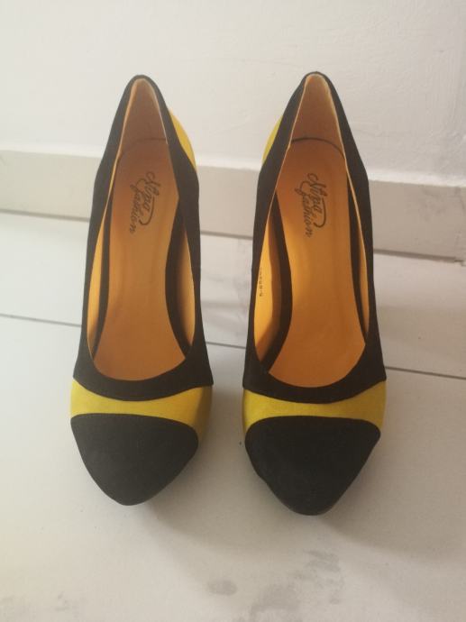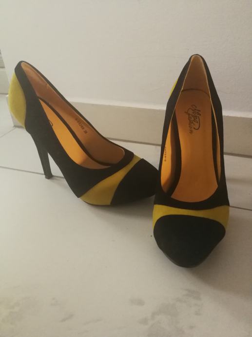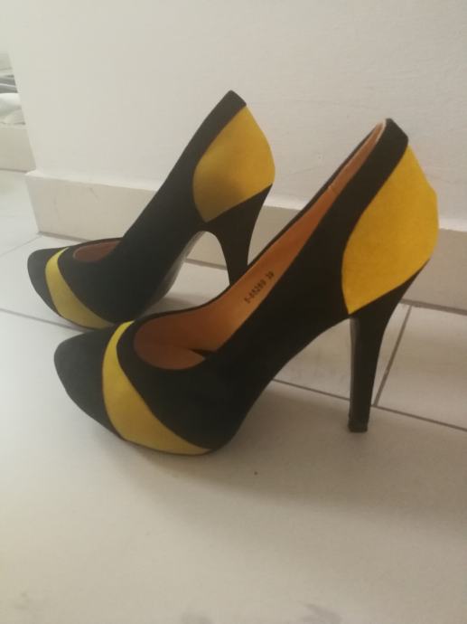 Crno žuto štikle. Jednom nošene. U dobrom stanju.