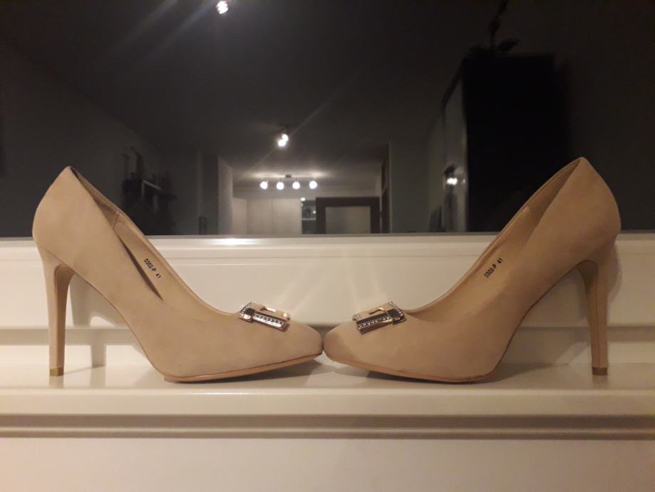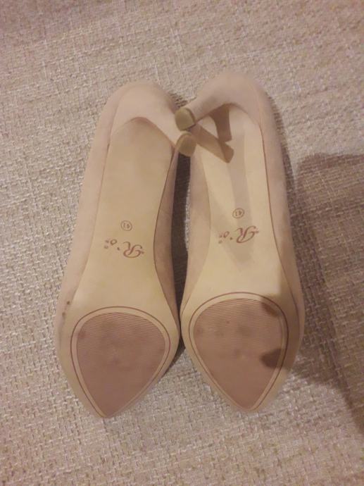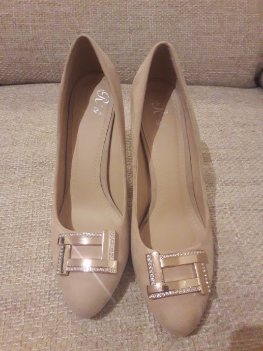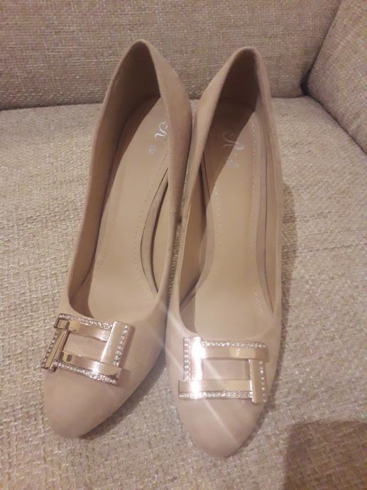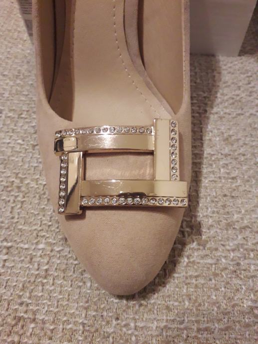 Štike boje kože sa zlatnom kopčom, 12cm peta, broj 41, nošene jednom kao nijednom. Jako udobne!