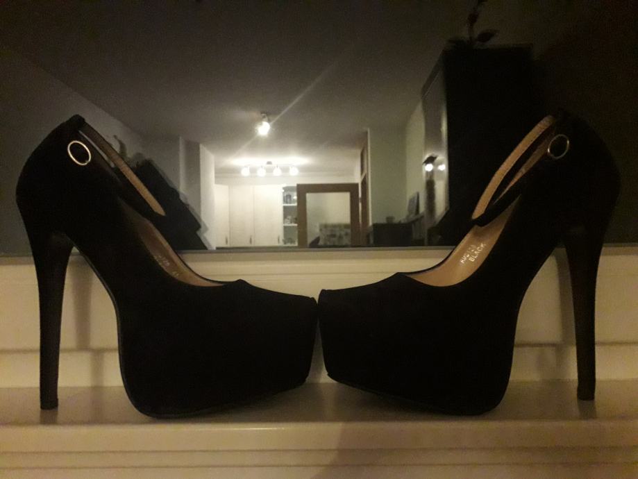 Mat crne platformke, broj 41, peta 16cm(zbog platforme), imaju remen oko gležnja, nošene jednom na maturalnu, kupljene u immportane centru za 350 kn. U odličnom stanju, prigodne za izlaske i kada se želite osječati kao diva iz grupe ABBA.