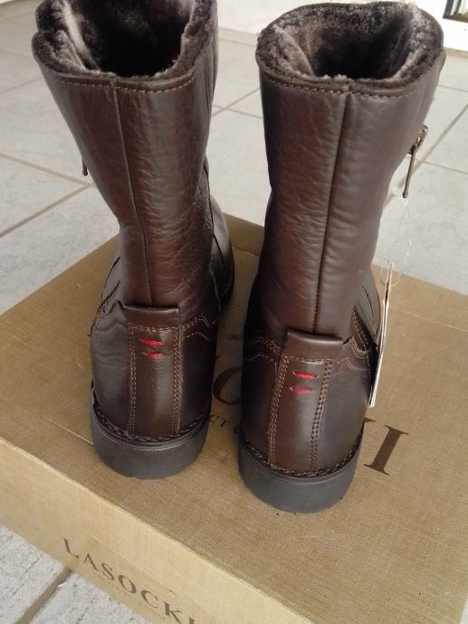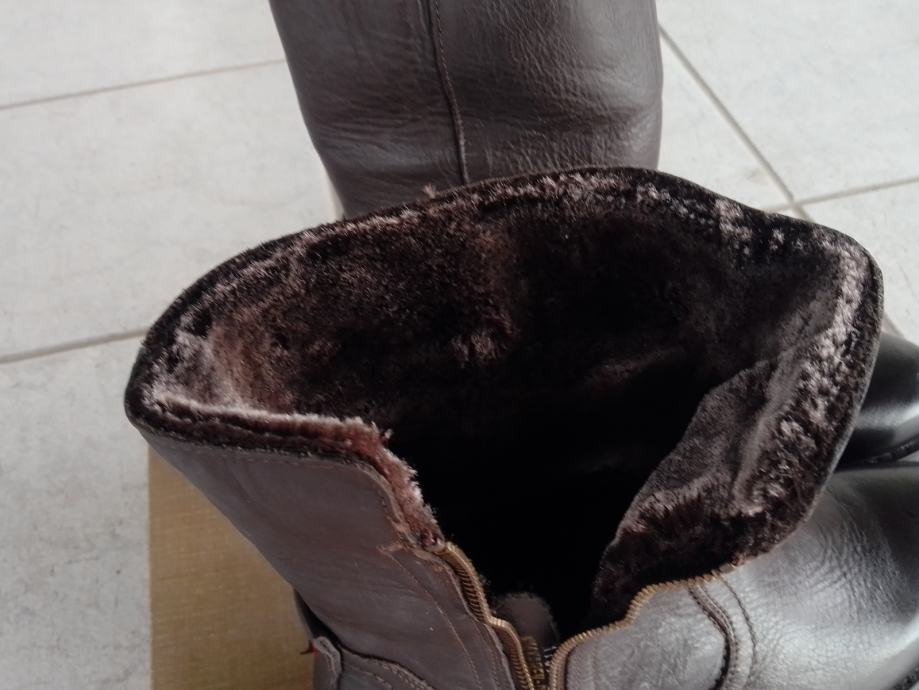 Čizme su potpuno nove, nenošene, u originalnoj ambalaži (Lasocki), lijepe čokoladnosmeđe boje, zatvaraju se zipom s unutarnje strane, izuzetno kvalitetne i ugodne, protuklizne, cijele od prave, kvalitetne kože ( unutra krzno), izvrsne!