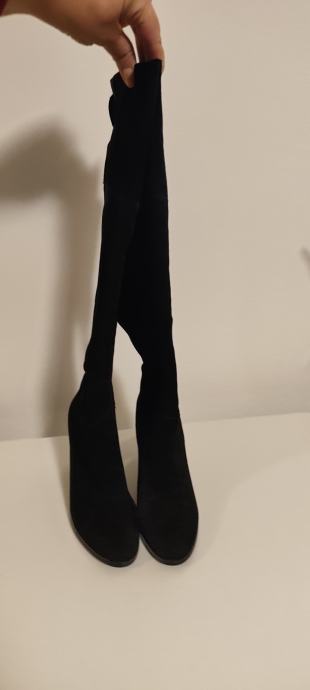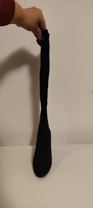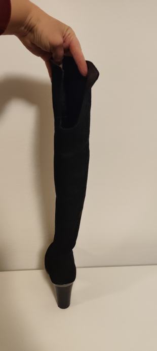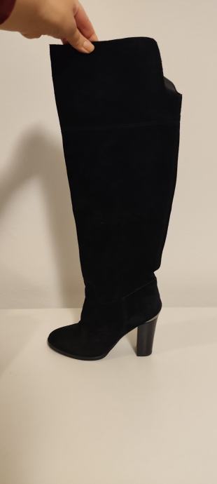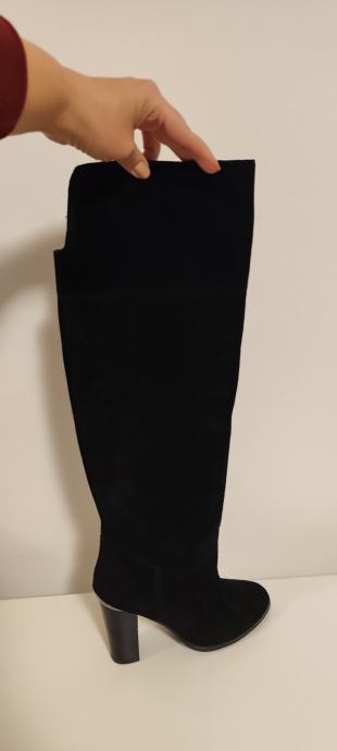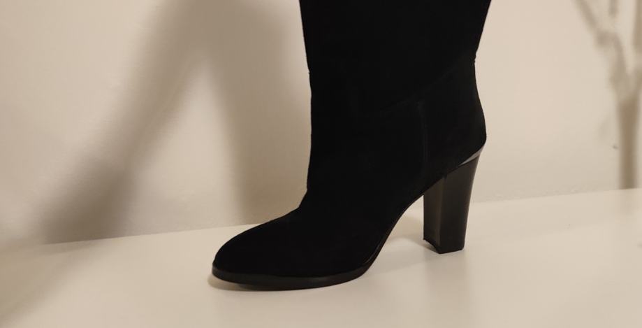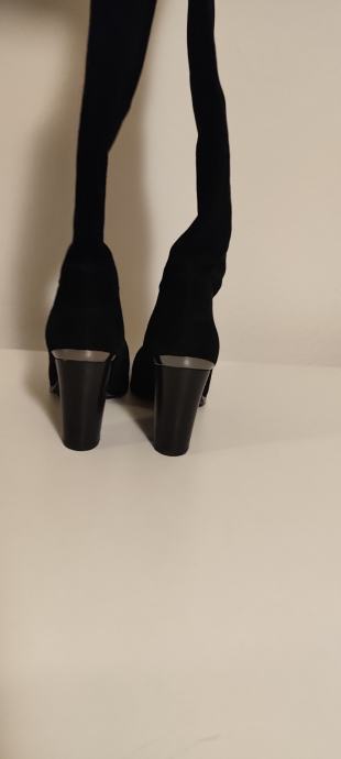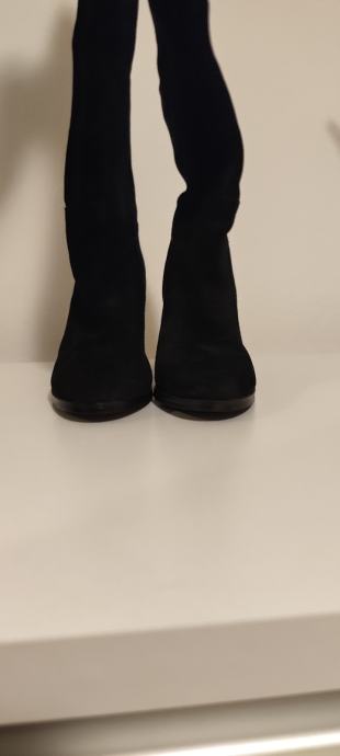 Dva puta nošene elegantne čizme, brušena koža, efektni detalji na peti. Peta 10 cm.