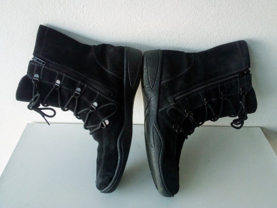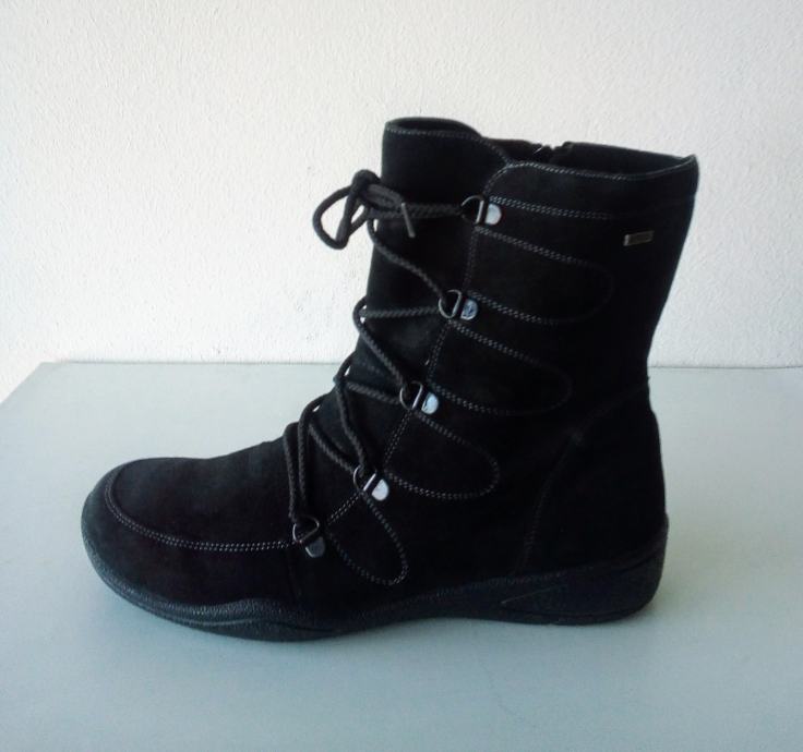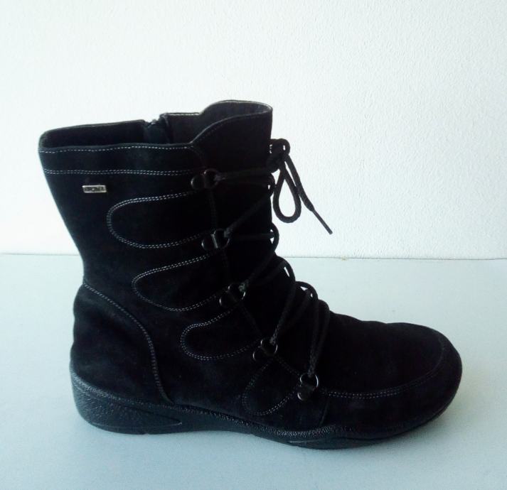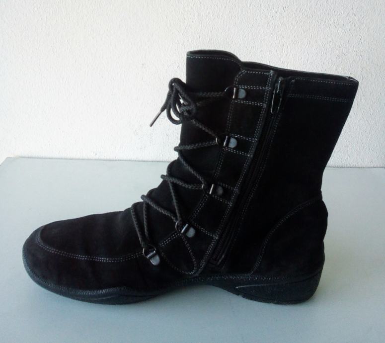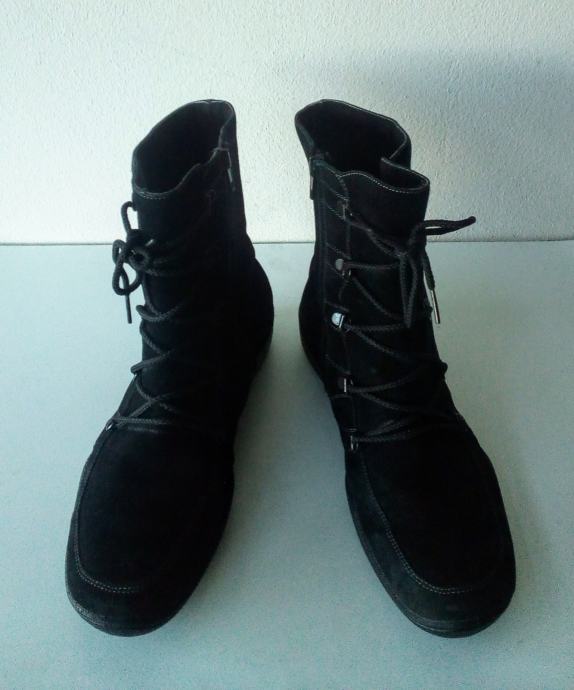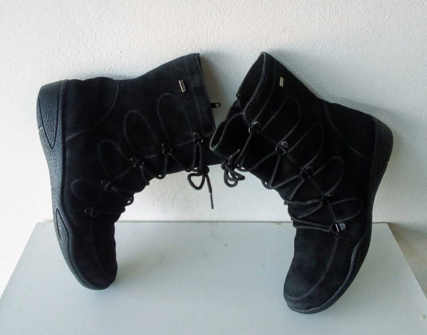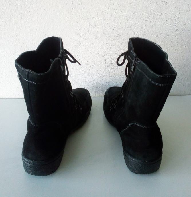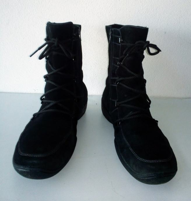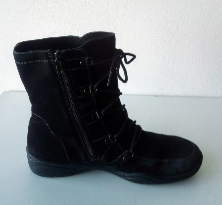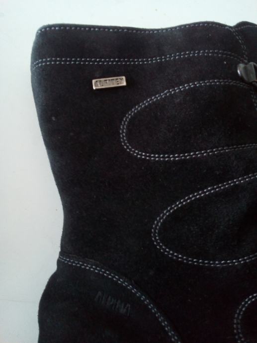 Crne ALPINA kraće čizme od prirodne velur kože sa ALPITEX vodonepropusnom membranom koja štiti od kiše, snijega i hladnoće. Veličina 40 (gazište 26,5 cm) sa G oznakom (udobna za normalnu širinu stopala). Obuvanje sa zatvaračem. Iznutra spužvasto podstavljene. Udobne, izdržljive i u dobrom stanju, bez oštećenja. Sniženo sa 200 na 180 kn.