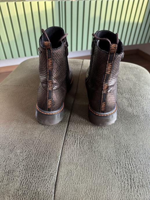 Boja je prošarana crno-smeđa, bakreni odsjaj, zmijski uzorak