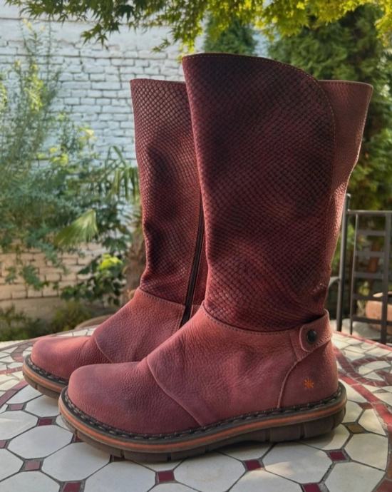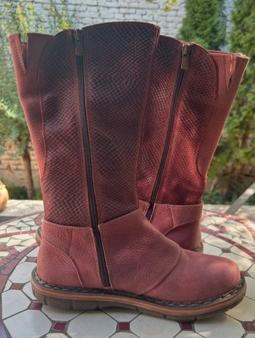 Kožne bordo čizme, zmijski uzorak, nikad nošene.