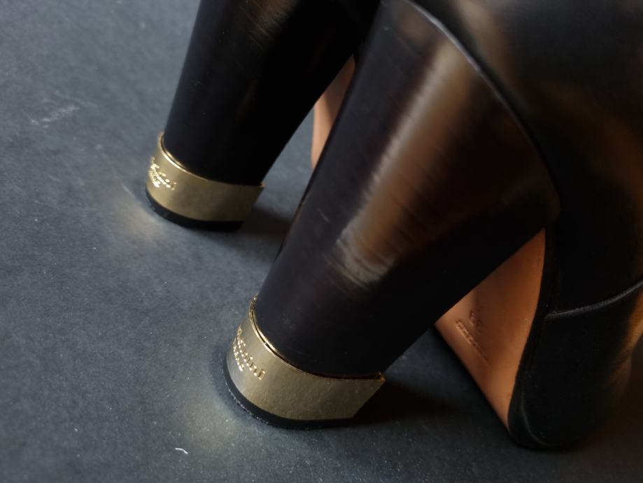 Crne kožne ženske Baldinini čizme, vel.39, stvarna veličina, u odličnom stanju, nošene par puta, kao nove. Kopčanje patent zatvaračem s unutarnje strane, zatvarači idu glatko, ispravni.