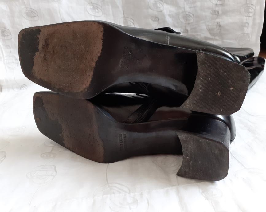 Broj 38 , dužina gazišta unutra 24,5 - 24,7 cm . Visina pete 4,5 cm , visina 43,5 cm od poda.