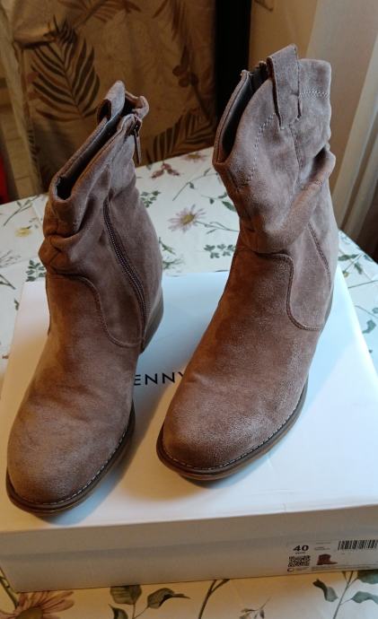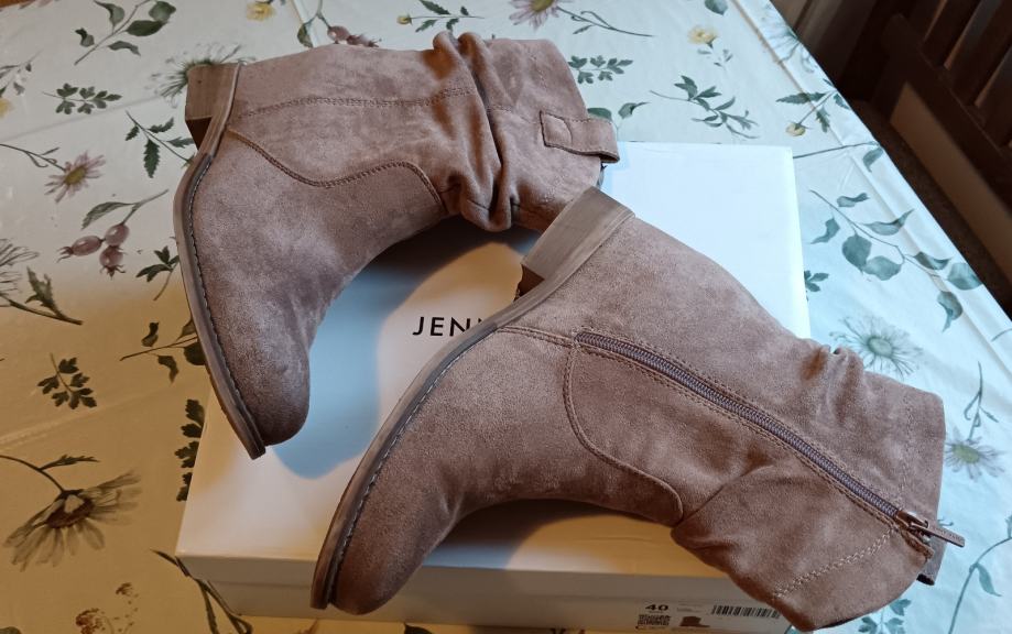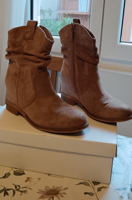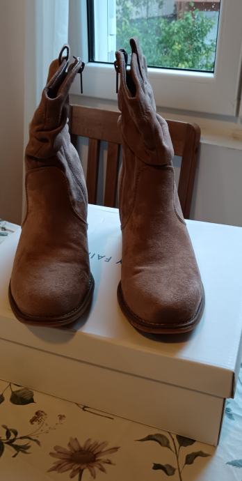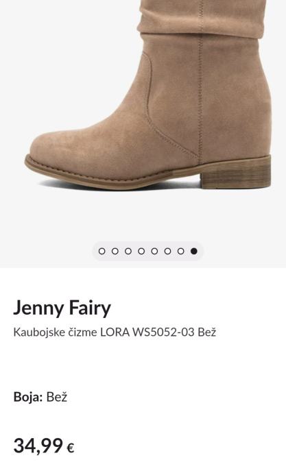 Prodajem jednom nošene bež kaubojske čizme marke Jenny Fairy, veličine 40 s unutarnjom potpeticom od 7 cm. Moderan dizajn idealan za jesensko-zimsku sezonu, izrađene od kvalitetnog materijala i vrlo udobne za nošenje.