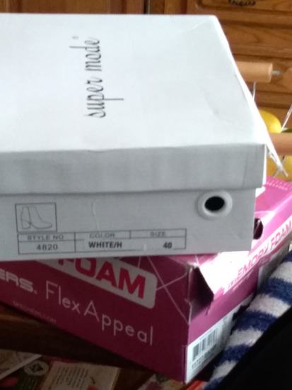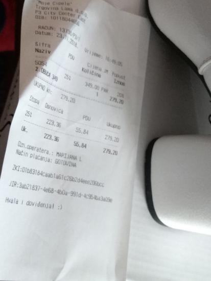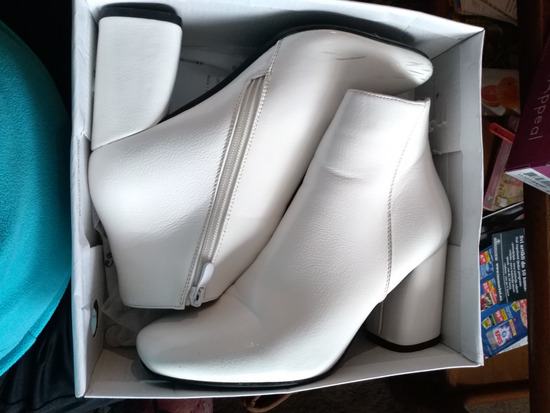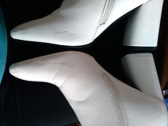 Nove lakirane bijele čizmice na visoku petu, kupljene u trgovini Moje cipele za 279kn na snizenju, redovna cijena je bila 349kn, vidljivo iz priloženog racuna
