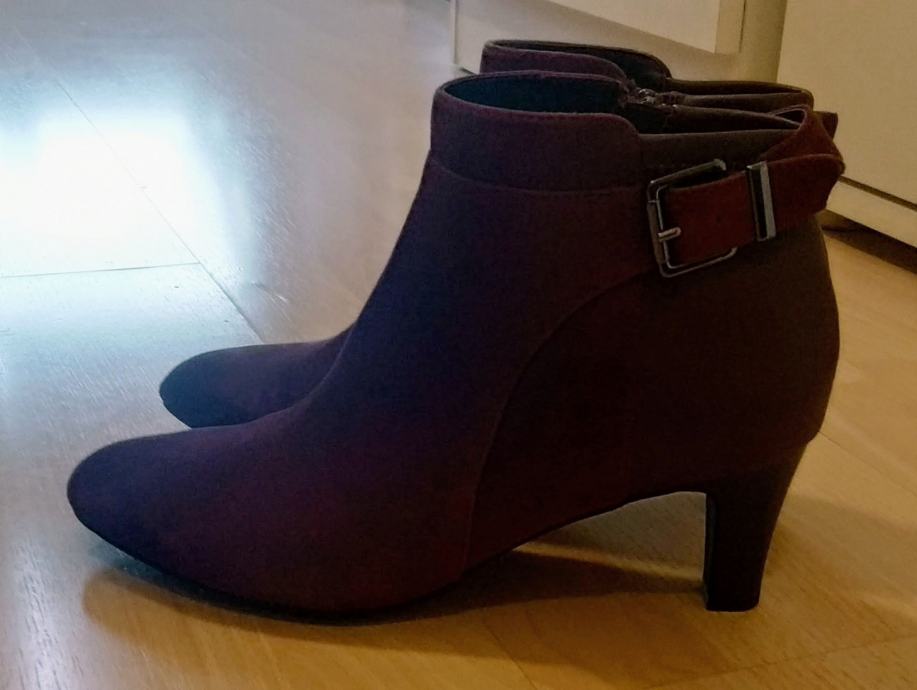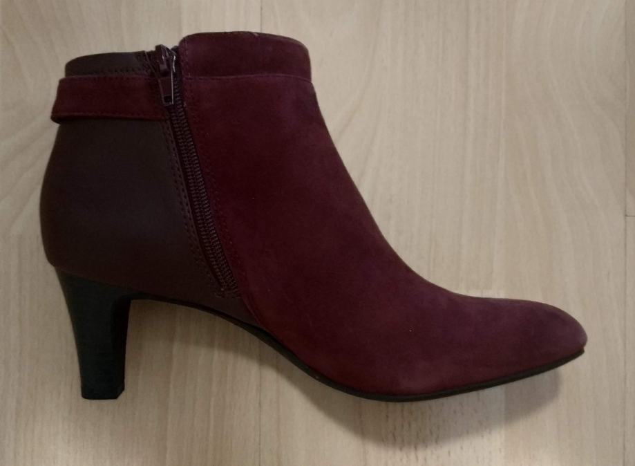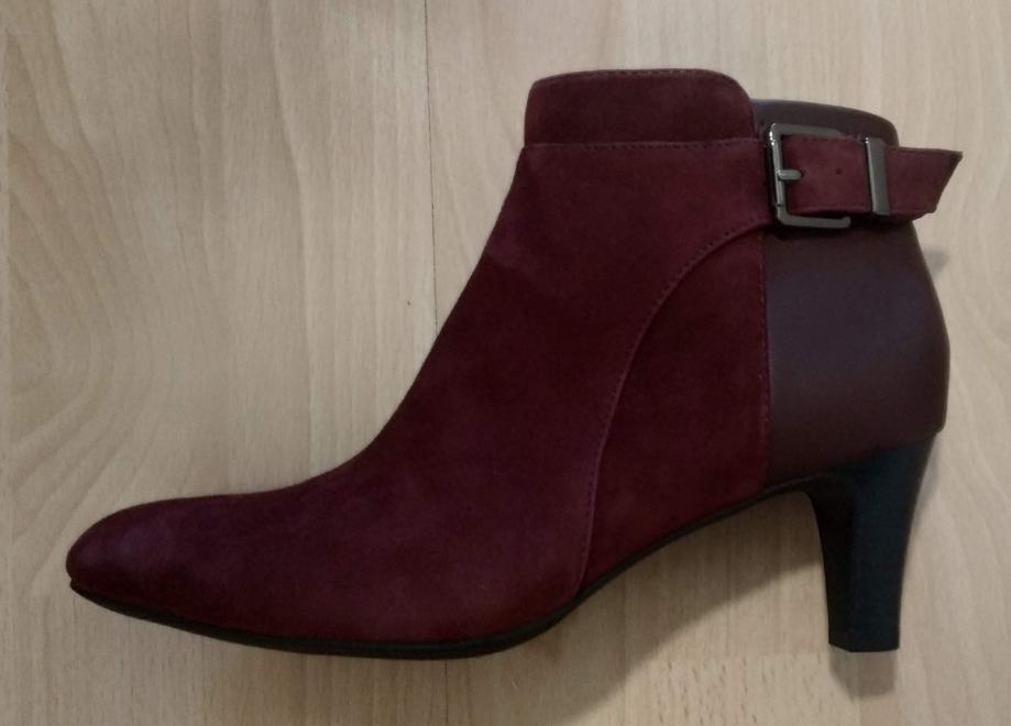 Bordo kožne gležnjače, mala peta, antilop, glatka koža, veličina 37