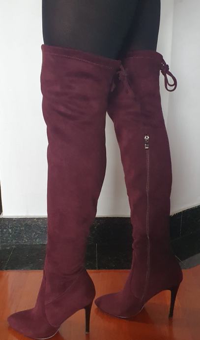 BORDO/LJUBIČASTE ČIZME IZNAD KOLJENA 39,TISAK UKLJUČEN
