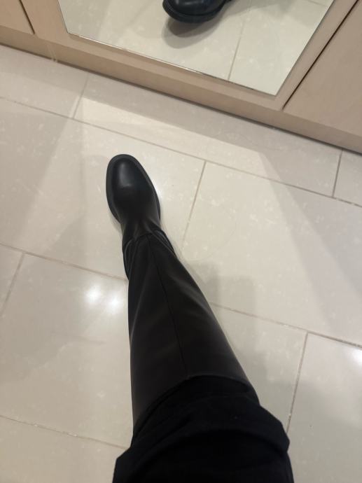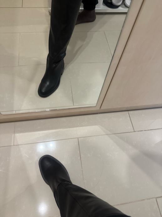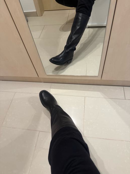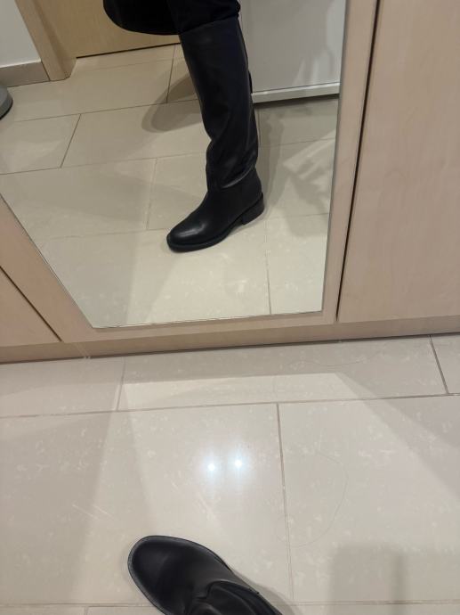 Čizme (answear lab), veličina 38, jednom nošene, prava koža. Dimenzije: ukupna dužina čizme sa petom 43 cm, širina dolje kod gležnja 14 cm, širina skroz gore 19 cm. Cijena 55€