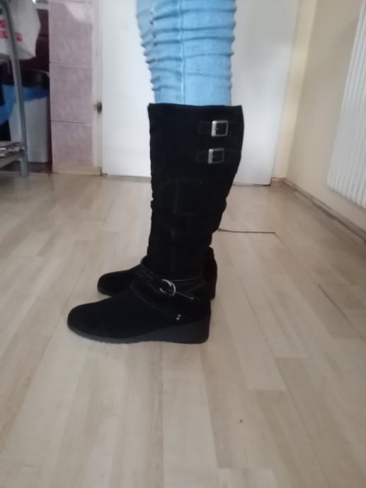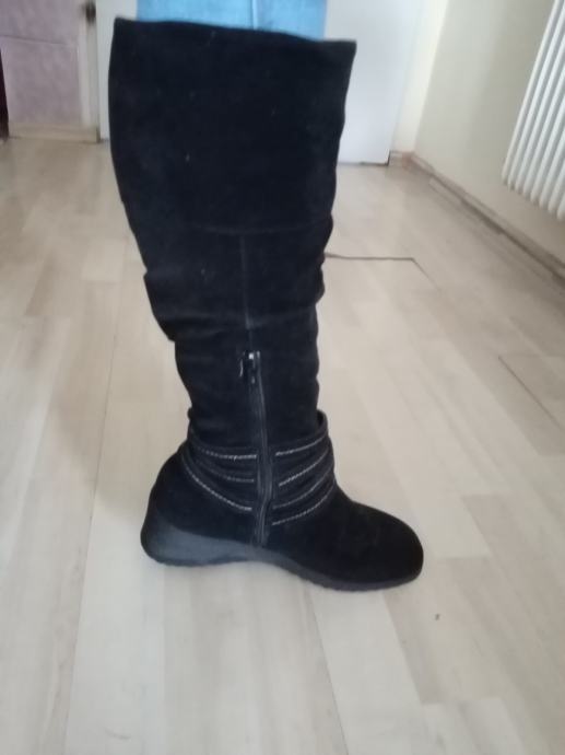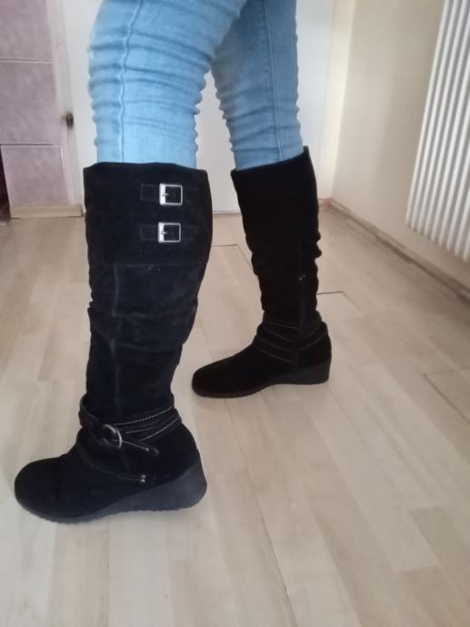Prodajem crne čizme od brušene kože. Broj 39.Dužina unutarnjeg gazišta je 26 cm. Nošene su ali su u dobrom stanju. Iznutra su tople. Puna peta.