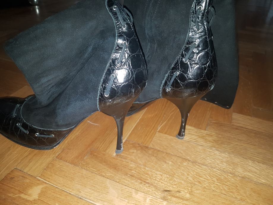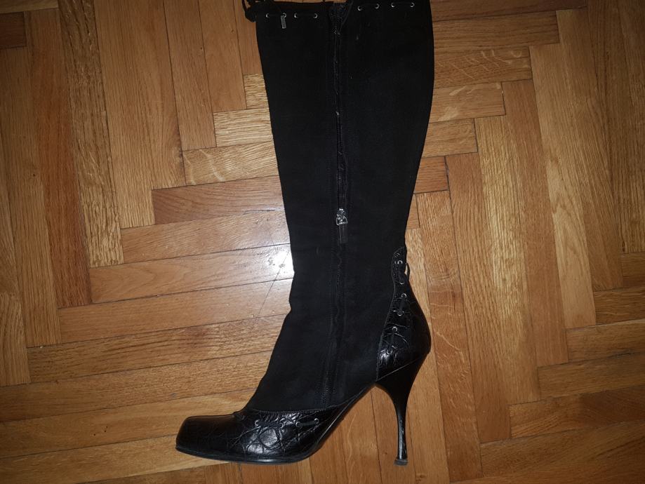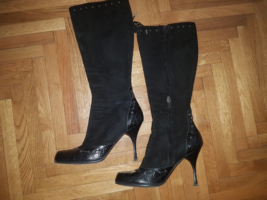 Original kožne zenske visoke čizme CERUTTI model SABI made in Italy - jako očuvane vel 39 1/2 duzina gazista 25 cm odgovaraju broju 39 ..100% original , kombinacija čiste i brušene kože ..vel 39 stanje vrlo dobro !