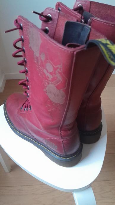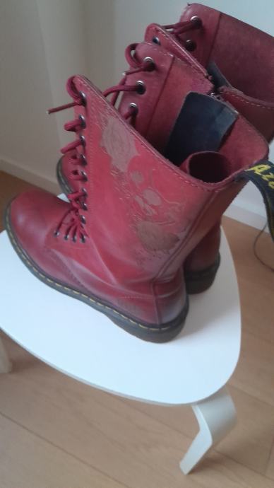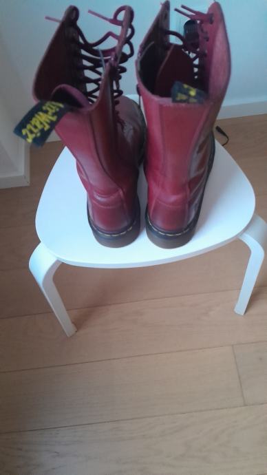 Prodajem malo nošene Dr. Martens 1914 kožne čizme u crvenoj boji veličine 39. Kultni model s 14 rupica za vezice koji se odlično uklapa u svaki jesenski i zimski outfit. Izrađene od kvalitetne kože, čizme su u odličnom stanju s karakterističnim Dr. Martens detaljem - žutom oznakom na jeziku.