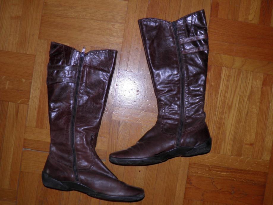 U super stanju, par puta nošene. tamno smeđe boje, minimalni tragovi nošenja, vel. 39, dužina tabanice iznutra 25 cm. iznutra obložene flisom tako da su tople. Visina 38 cm, sara 18,5 cm.