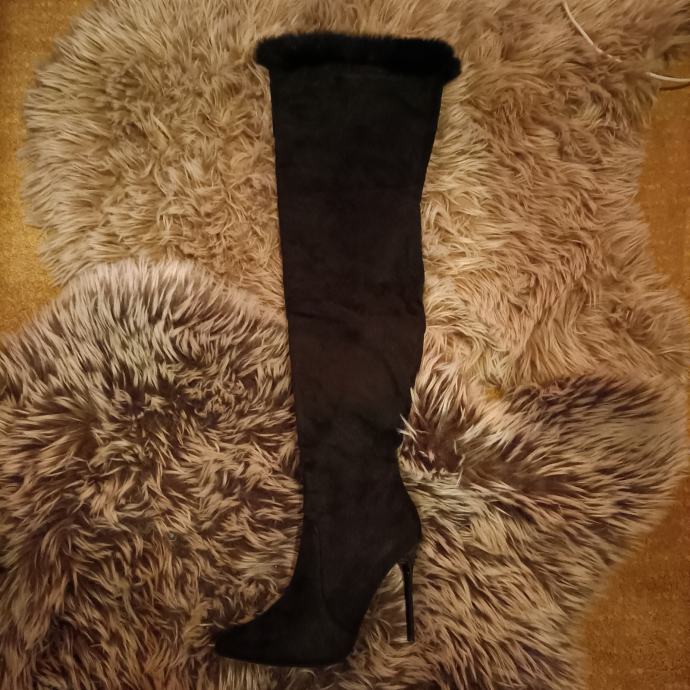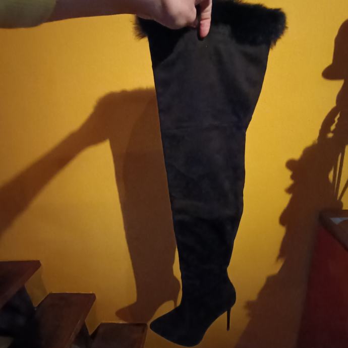 Visoke dosta uske crne čizme, nikad nošene, broj 37. Jednostavan i elegantan model. Preuzimanje na području Zagreba, Buzina, Velike Gorice.