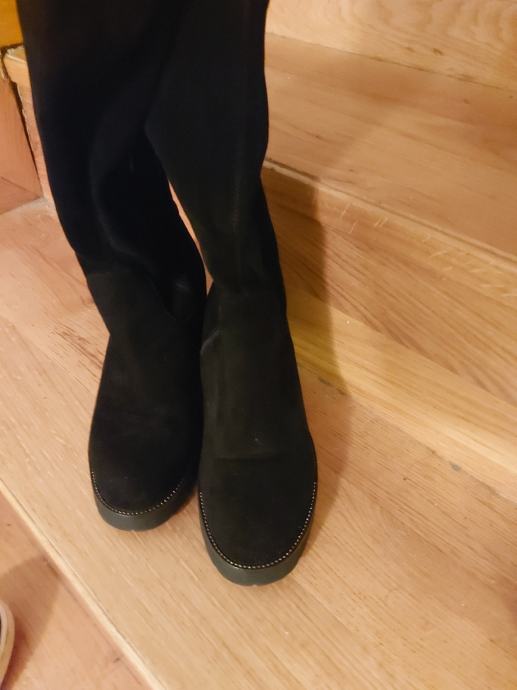 Prodajem zenske cizme sa skrivenom petom. Velicina je 39. Cizme su nosene samo nekoliko puta i lijepo su ocuvane. Jako su lijepe, efektne zbog pune pete koja se ne vidi, udobne su i bas su za svaki dan. Cijena je 100 kuna.