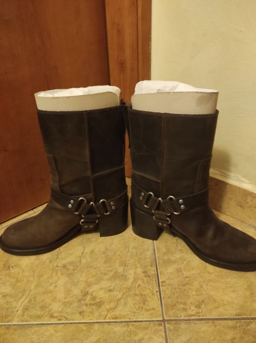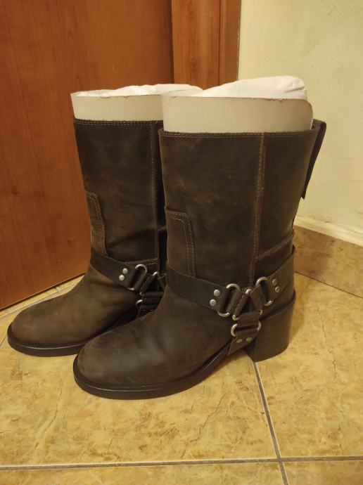 PRODAJEM ČIZME SMEĐE, KOŽNE, KAO NOVE, ZARA, BR. 40, VISINA PETE 7 cm