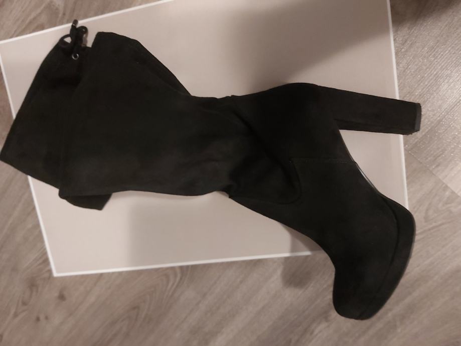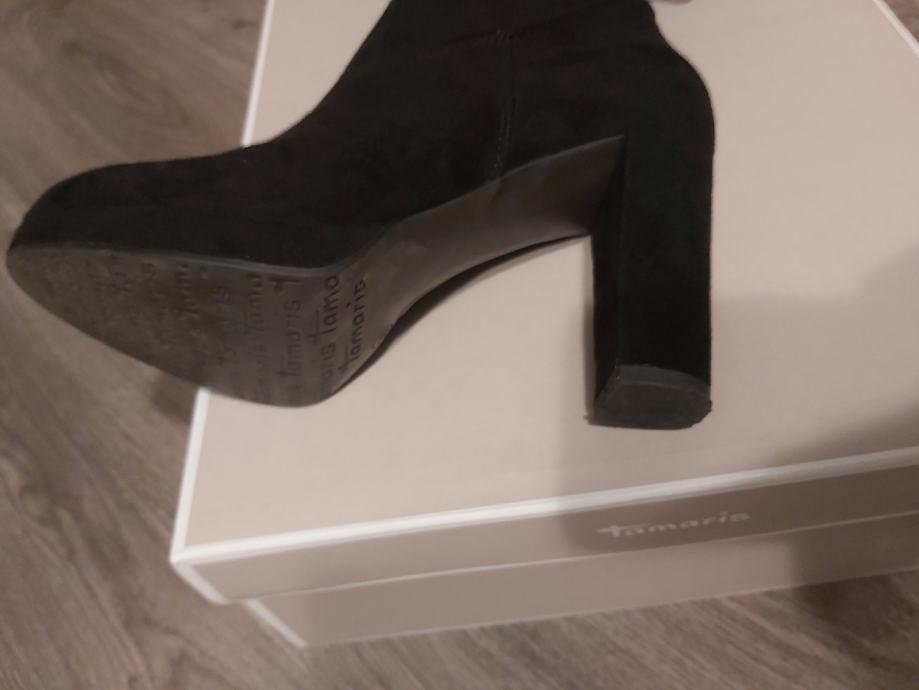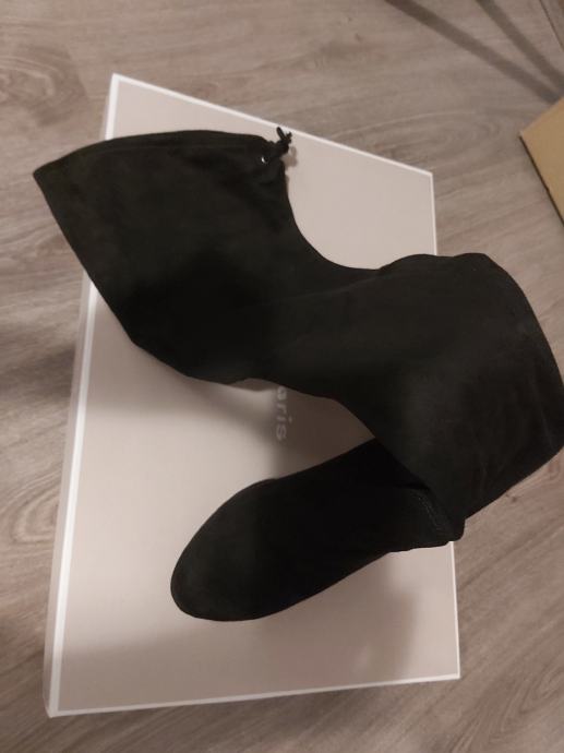Cizme marke Tamaris na visoku petu, broj 38, jednom kratko nosene sa orginal kutijom, crne, antilop.